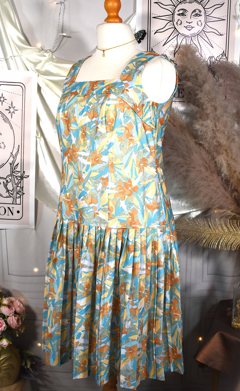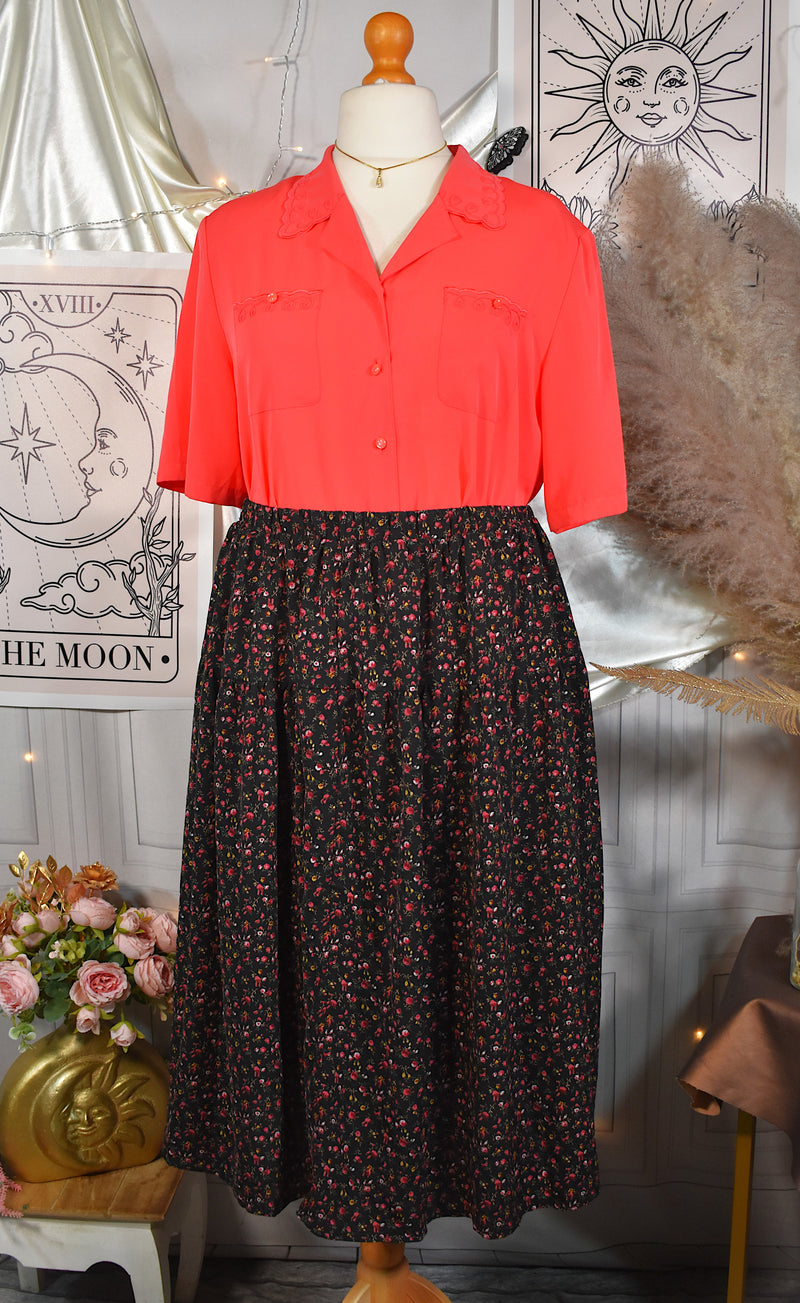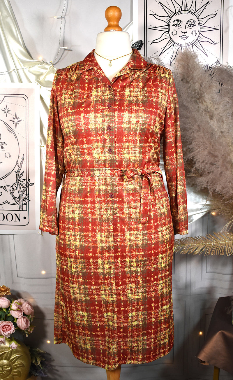 Robe vintage à carreaux jaune et rouge avec ceinture