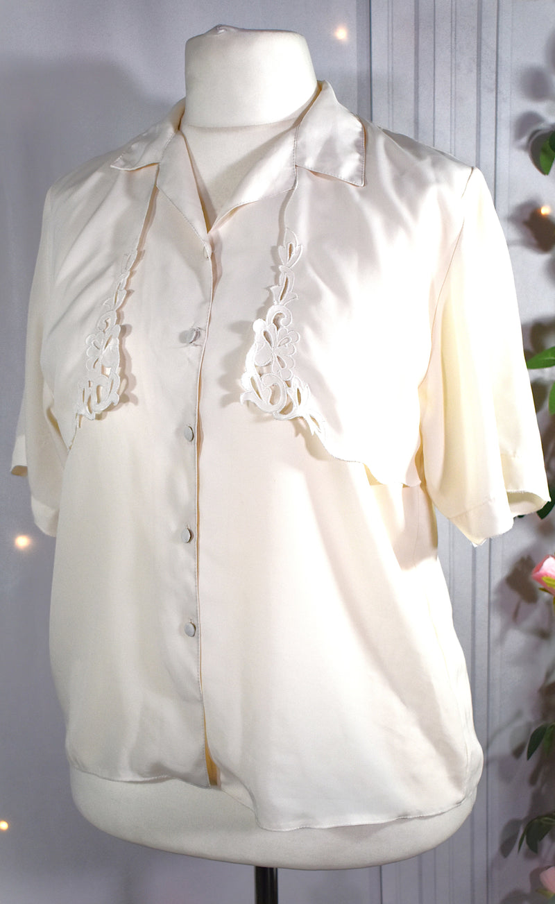 Chemise blanc cassé avec empiècements ajourés