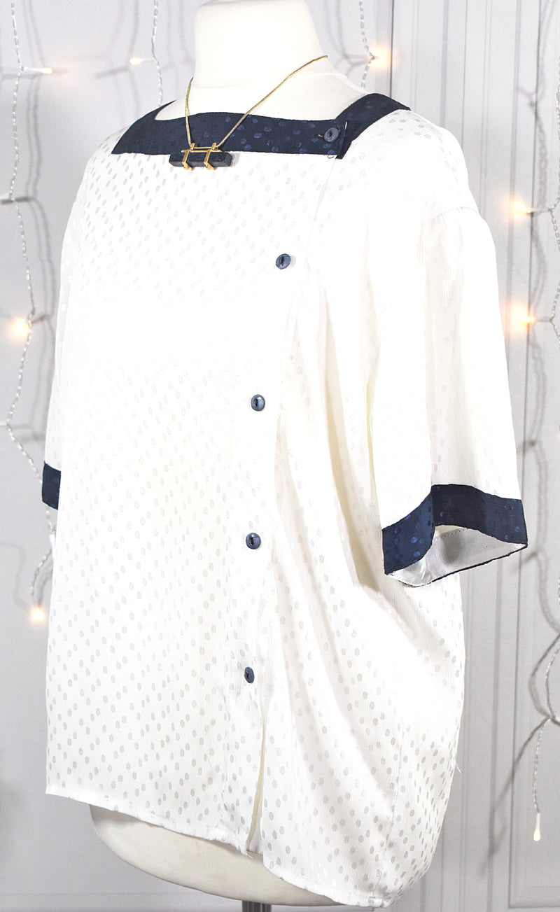 Blouse aux pois damassés blanc & bleu marine