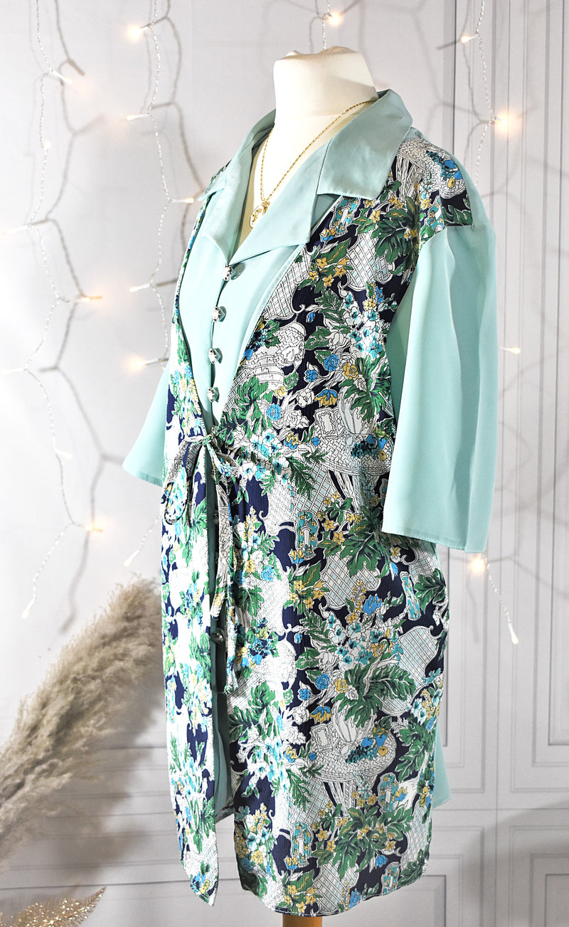 Chemise fluide foulard turquoise aux motifs floraux