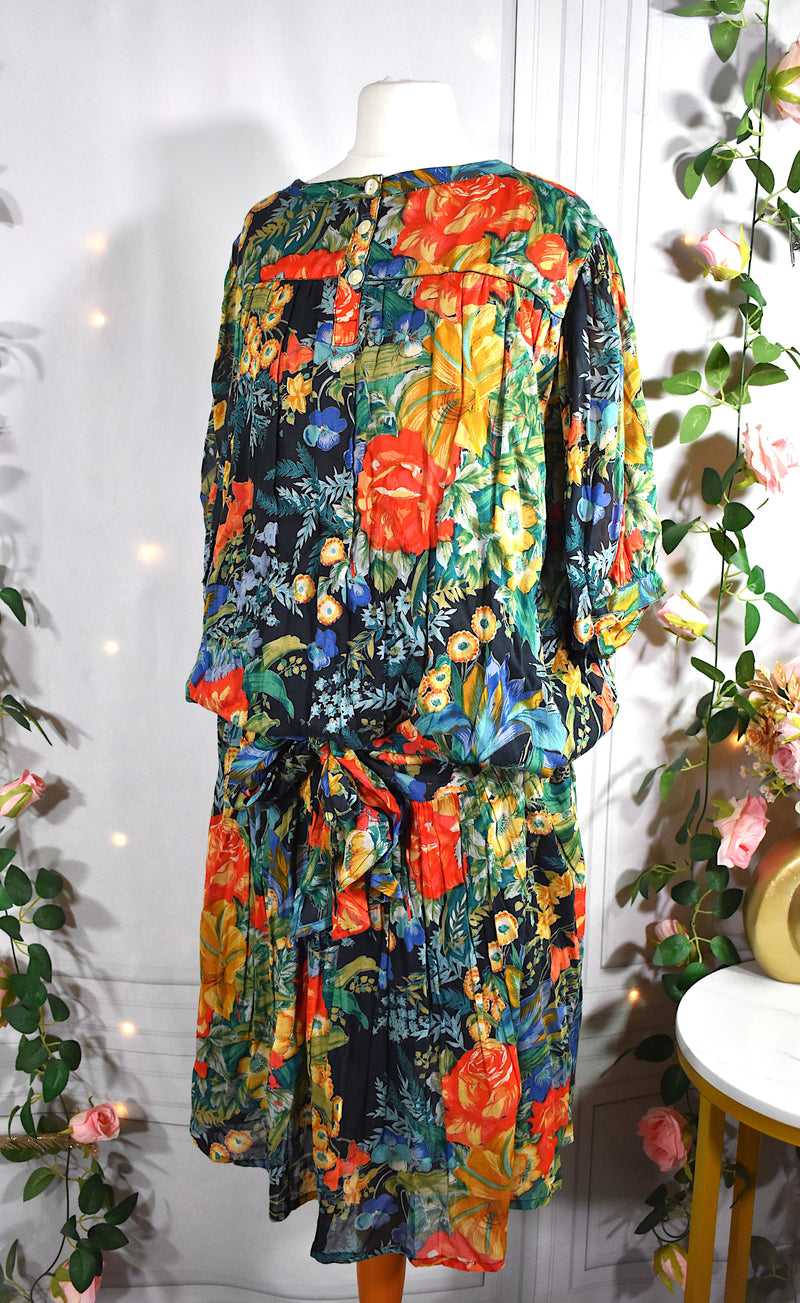 T-shirt en soie moutarde au motif floral Attic and Barn